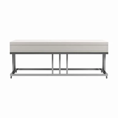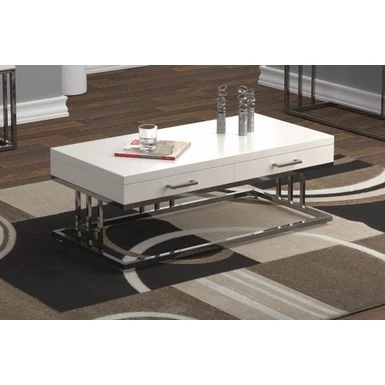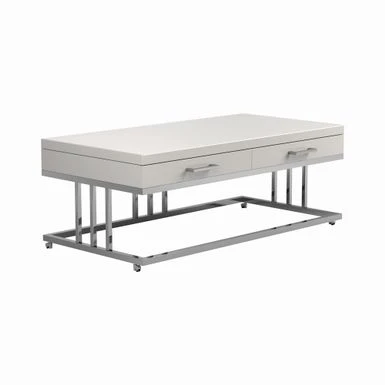 Serve or entertain your guests on this modern coffee table. The clean lines declare the contemporary nature of the piece. Glossy white tabletop serves to amplify style and also match your chosen decor. The table also includes smooth and closing drawers on full extension glides. Match with the end table and sofa table from the same collection.