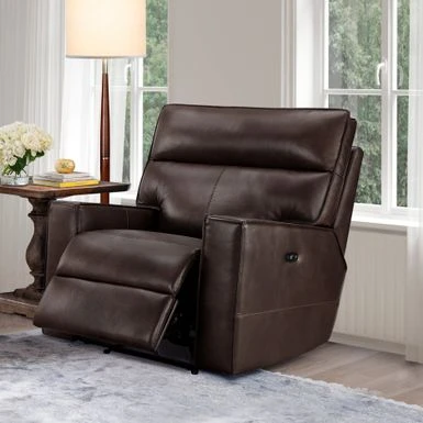 Bring luxury, comfort, and relaxation into your living space with this Reclining Armchair. Featuring Top Grain leather and comfortable foam seating, you’ll be thrilled by the added electric power headrest and footrest. Activated at the ease of a button, this piece is sure to be a winner for daily relaxation.