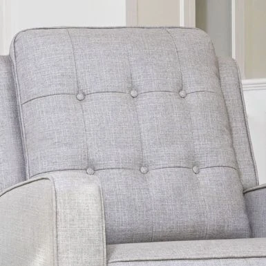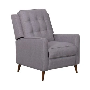 Introduce mid-century style in your living room with this Indio pushback recliner from Abbyson. Featuring a solid hardwood frame and wooden legs, this recliner is strong and durable. Padded polyester seat upholstered in soft fabric with a tufted back and track arms provide a comfortable seating experience. The pushback reclining feature with the pocket coil spring seating allows you to relax and rest after a long, busy day at work. The hand-tufted buttons lend an elegant look and modern flair to your room.