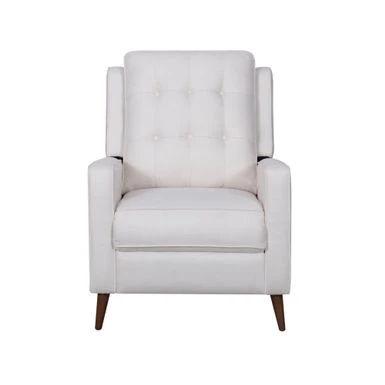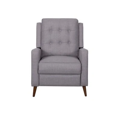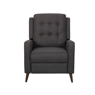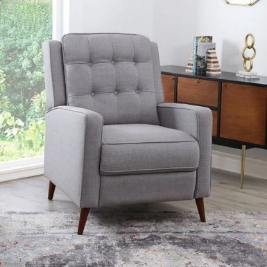 Introduce mid-century style in your living room with this Indio pushback recliner from Abbyson. Featuring a solid hardwood frame and wooden legs, this recliner is strong and durable. Padded polyester seat upholstered in soft fabric with a tufted back and track arms provide a comfortable seating experience. The pushback reclining feature with the pocket coil spring seating allows you to relax and rest after a long, busy day at work. The hand-tufted buttons lend an elegant look and modern flair to your room.