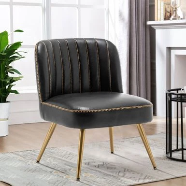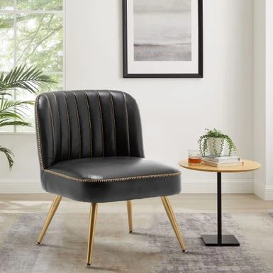 - ElegantThis accent chair designed with PU leather and golden stitching for an extra touch of style. The golden legs features that lend a look of luxe and elegant. It is also easy to clean.