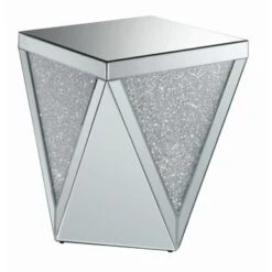 Square End Table With Triangle Detailing Silver And Clear Mirror