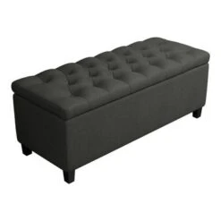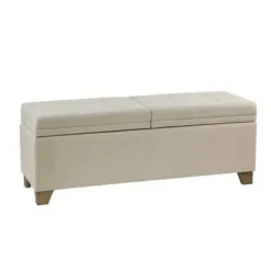 Rubber Wood Bench With Faux Leather Upholstery Large Brown – Faux Leather – Wood – Brown