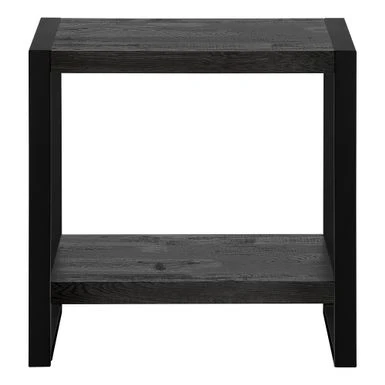 - 2-tier accent table with a thick, rectangular tabletop and fixed lower shelf in a black reclaimed wood-look finish