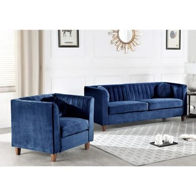 Experience the ultimate in luxurious comfort with the Arvilla velvet Kitts Classic Chesterfield living room set. This timeless piece adds sophistication to any living space, from grand Victorian homes to modern studio apartments. Skillfully crafted with a solid wood frame and stylish wood legs, it features a pleated design on its foam-filled velvet upholstery that exudes elegance. This set comes complete with two bolster pillows for added style and comfort.