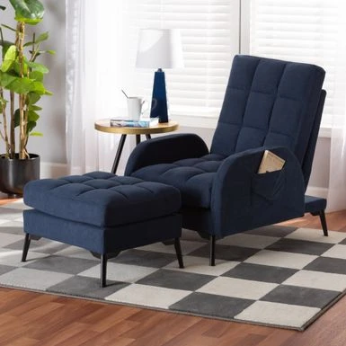 - Modern set includes one recliner (1) chair and one (1) ottoman