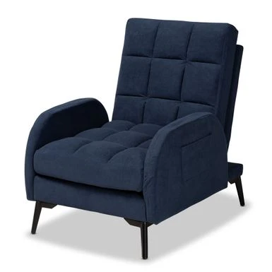 Give your home a cozy spot to relax and unwind with the Belden lounge chair and ottoman set. Made in China, this set includes one recliner chair and one ottoman comprised of sturdy wood frames padded with foam and upholstered in luscious velvet fabric. The cushions feature grid-tufting to provide plush comfort while showcasing contemporary style. Requiring assembly, the Belden chair reclines 90 degrees and features a handy storage pocket on the side of the chair for remotes, books, and more. With a sleek, contemporary design, the Belden lounge chair and ottoman set is sure to look right at home in any private setting..