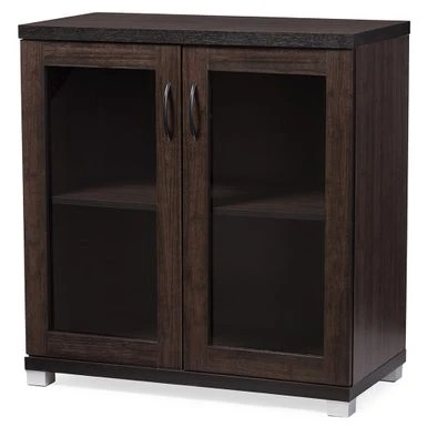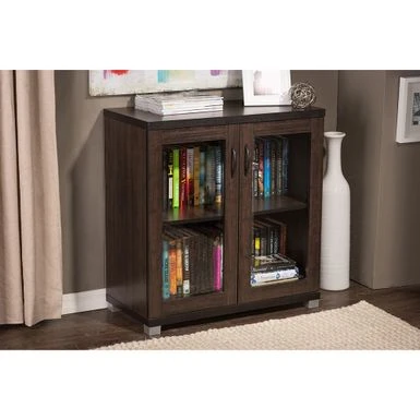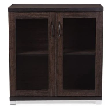 The Zentra Sideboard Storage Cabinet features two glass doors with two convenient see through shelving areas, providing a perfect spot for your latest decorative acquisition or your important documents. Uncomplicated and practically dark brown, the design of the Zentra Sideboard Storage Cabinet is undoubtedly flawless in the eyes of any homeowner to whom a simplistic aesthetic is equivalent to perfection. The Zentra Sideboard Storage Cabinet features two glass doors with two convenient see through shelving areas, providing a perfect spot for your latest decorative acquisition or your important documents. For a modern and contemporary look, the cabinet is completed with PVC moon handles and powder coated legs. Made in Malaysia, the sideboard cabinet requires assembly.