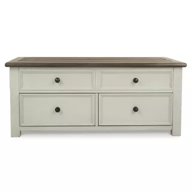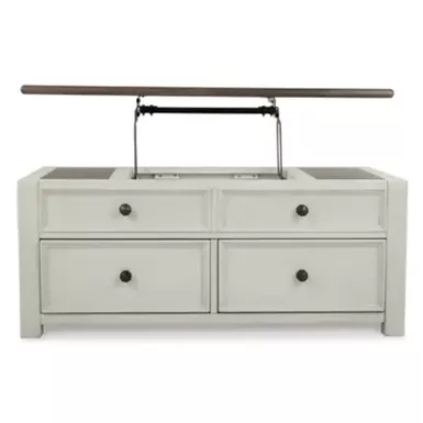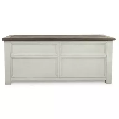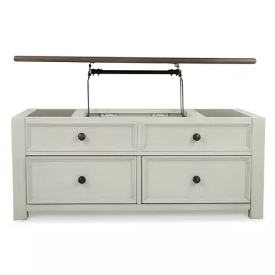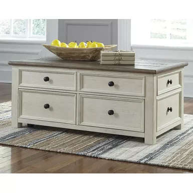 Store, serve and showcase your favorite things with the Bolanburg lift top cocktail table. Its textured antique white finish creates a vintage two-tone look that will endure for years.