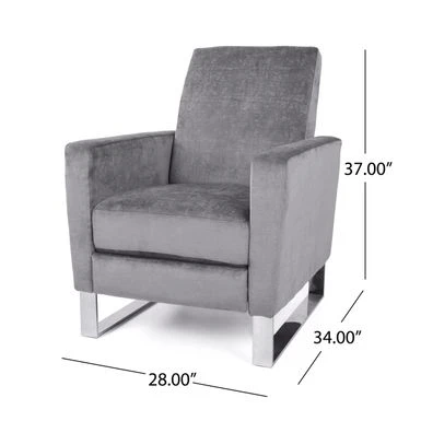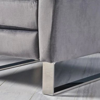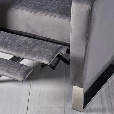 This stylish modern recliner chair will elevate your decor with extra comfort and style. The grey polyester chair is supported by stainless steel legs for an eye-catching contemporary look. The push-back recline function lifts the footrest as you recline for optimal lounging.