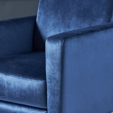 - Your choice of a cobalt, eggplant, or emerald poly velvet fabric upholstery