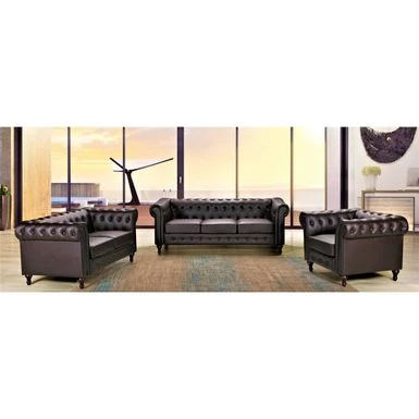 Elevate your living room with the Brooks Classic Chesterfield 3-Piece Living Room Set featuring a sofa, loveseat, and chair. The two-tone matte velvet upholstery exudes timeless style and the high-density foam cushions provide luxurious comfort for seating. The loose back cushions allow you to showcase either side of the sofa while the set includes two accent pillows.