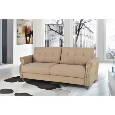 - Button tufting and gleaming nail head trim add elegance