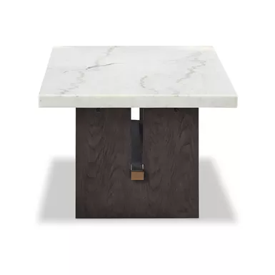Dressed to thrill, this simply stunning coffee table offers a high-design look at a down-to-earth price. Ultra-sleek lines are accentuated with a dark waxy brown oak finish that’s so easy on the eyes. Clean-lined and modern, the plinth base and natural marble tabletop showcase quality craftsmanship and attention to detail. This table is the perfect centerpiece for a living room or family space, with a timeless look that’s made to last.