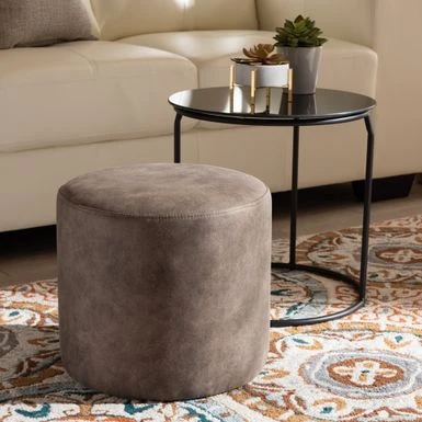 Achieve maximum practicality with this set, which includes an ottoman that nests under the included cocktail table for compact storage in small spaces. Foam padding and polyester upholstery on the ottoman provide comfortable support and sturdy use. Achieve maximum practicality with this set, which includes an ottoman that nests under the included cocktail table for compact storage in small spaces. Foam padding and polyester upholstery on the ottoman provide comfortable support and sturdy use. Glass and metal construction gives the table sleek, modern appeal. Modern and contemporary set includes one (1) table and one (1) ottoman Style: modern Materials: fabric “polyester 100%”, glass, metal Color: grey, brown, black Table is constructed from metal and glass Ottoman is upholstered in polyester fabric and padded with foam Round tabletop Nesting design Includes: one (1) table ; one (1) ottoman Assembly: assembly required Care instruction: spot clean Table overall: 12.6″ high x 13.78″ wide x 15.75″ deep Seating overall: 13.78″ wide x 13.78″ deep x 12.6″ high (from floor) Product weight: 11.24 lbs.