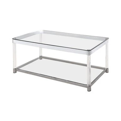 Complete a stylish contemporary space with this glamorous coffee table. Create an elongated look with the sleek and rounded acrylic legs. The top and built-in storage shelf offer ample room for display, complete with chrome features. Go all-in on a chic minimalist theme with the bold metallic presence. Craft a stylish visual with the versatile display.