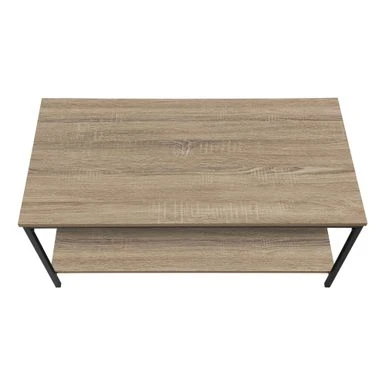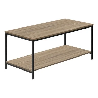 Bring style and function to your home with this two tier coffee table, finished in a sleek dark taupe laminate combined with a black metal base. The square metal tube base is both fashionable is sturdy enough to support books, plants or any décor that you desire to put on display. Large enough to be practical while versatile enough for any home living space whether spacious or small.