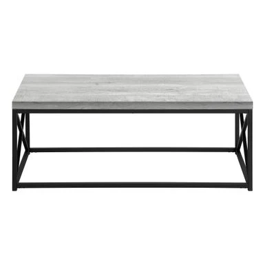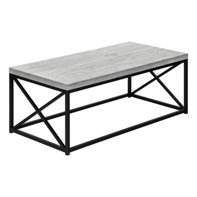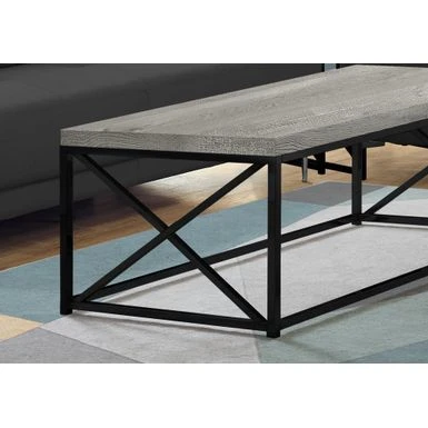 Inspired by clean lines and a simplistic, industrial feel, this grey reclaimed wood look and black metal coffee table offers a rustic style that will make you feel comfortable in your living room, office space or den. With the smoothest of thick panel surfaces, a wood-like texture warms up your living space, while the sturdy criss-cross black metal legs complement the table top. Add this stand-out center table to small home, condo or apartment’s décor collection now!