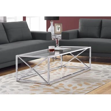 If you are looking for that one piece that anchors your living room, then this stylish yet minimalist rectangular coffee table will pull it all together. This chic table is framed in a high polish silver chrome metal base with a X design on the sides for a touch of sophisticated glamour. The spacious and thick clear tempered glass top is perfect to set down a tray when entertaining, or magazines and decorative objects. With a clean and contemporary design, this coffee table looks right at home in today’s living room, family room, office, or den without crowding a space. Assembly is required.