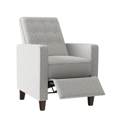 Experience comfort and elegance with the Copper Grove Button Tufted Pushback Recliner Chair. With its classic design, button tufted back cushion, and squared arms, this recliner combines both style and comfort. Simply push back to recline and relax your way into long-term sitting, TV viewing or just a relaxed recline. Perfect for any living room, den or master bedroom, this chair features solid wood square legs in a dark espresso finish and is covered in a durable, easy to clean tweed-like woven fabric.