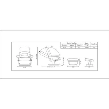 - 44.5~32 Recline” H x 34″ W x 32~44.5 Recline” D