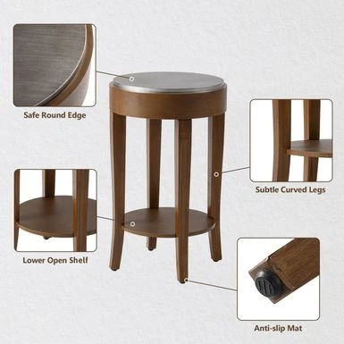 The Nouveau Side Table (pictured) draws from the Art Deco, and Art Nouveau schools of design with its gracefully sculpted legs of deep-chocolate-stained solid pine atop which rests a stylish black and silver brushed-varnish tabletop. The smooth surface can be easily cleaned with a damp cloth to maintain its luster. It also can be used as end table, nightstands, accent table, bedside table, chair side table for living room and bedroom.