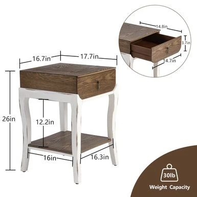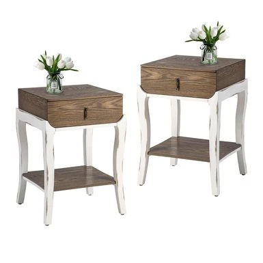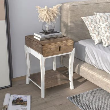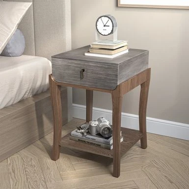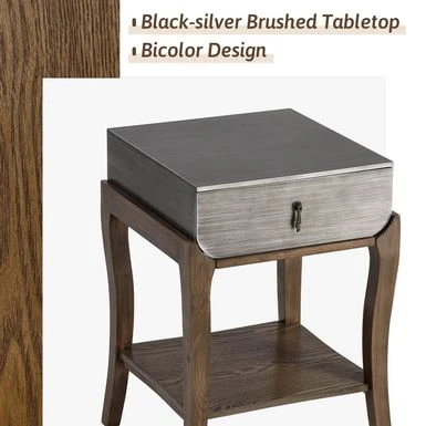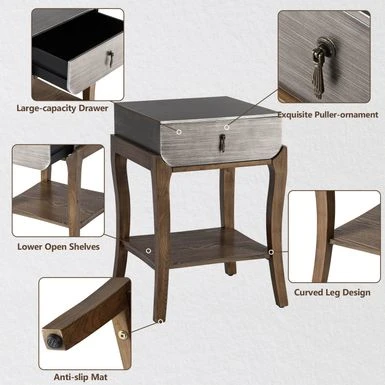 Introducing the Cosiest Nightstands with 1-Drawer and Storage Shelf, the perfect addition to any modern bedroom. With a spacious tabletop and a deep drawer featuring a decorative metal puller-ornament, this bedside table offers ample space for all your bedtime essentials. The open lower shelf provides additional storage for your favorite sleep-inducers. Available in two color-style options, this retro-deco style nightstand is made of high-quality MDF finished with beautiful imported ash veneer and brushed hand glazing techniques that create a contrasting black and silver striation pattern on the top surface. The radiused left and right corners of the drawer keep the contents toward the center, making it easier to quickly find what you need. Assembly is required, but with simple instructions, hardware, and tools included, you can have it set up in just 20 minutes.