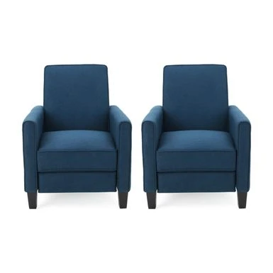 This luxurious, supportive, alluring recliner club chair twosome offers plush comfort while getting the most out of your space with its petite design. Featuring piped edges, smooth upholstery, and sleek tapered legs, these recliners bring an atmosphere of refinement anywhere.