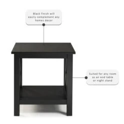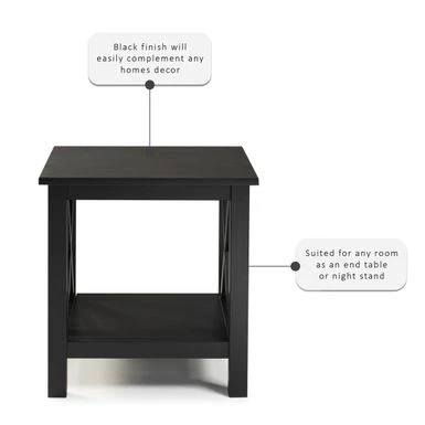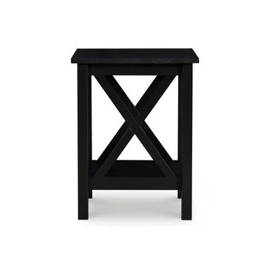 The Davison Collection has a simple yet eye-catching design that is matched with incredible durability. The End table features a classic shape that makes it perfect for any space. A spacious tabletop and a large bottom shelf provide ample storage and display space. A neutral, black finish allows this piece to easily complement your homes decor.