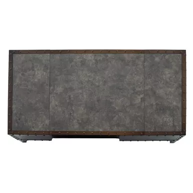 - Metal accent trim finished with a faux leather color