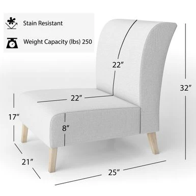 - Slipper Chair : 32in high x 21in deep x 25in wide