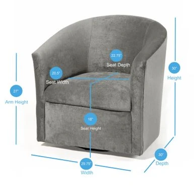 - Chair measures 30 inches high x 29.75 inches wide x 30 inches deep