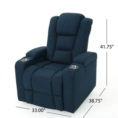 Our delightful motor-powered recliner chair provides an incredibly high degree of refreshment in a compact and attractive package, emphasizing a sophisticated and charming contemporary design. Featuring a plush tufted backrest, armrests with storage, an included USB port, and two cup holders, this recliner pairs perfectly with its convenient functionality allowing for high comfort with little effort. Sure to become the new favorite spot of leisure, you and your family will surely enjoy this recliner whenever you have a moment to unwind.