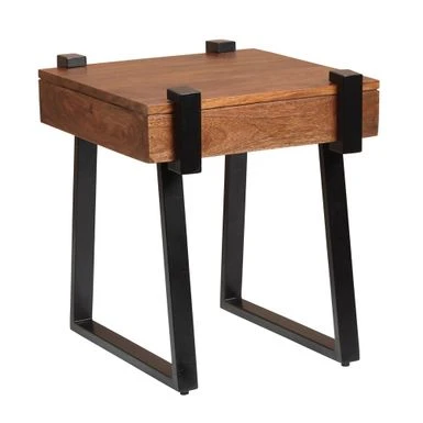 Contemporary style and rustic industrial design combine in this curated end table. It will be a part of those petite moments that light up your day. Your essential cup of coffee, the book you have been trying to read, the grocery list you made, which will always somehow find their way to the charming table.