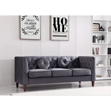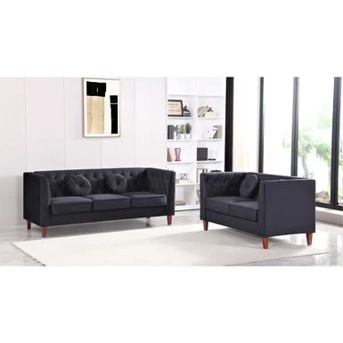Add sophistication to your home with the Fancher Kittleson Classic Chesterfield 2 Pieces Livingroom Set. The solid wood frame and crushed velvet upholstery give this set a regal appearance, while high-density foam with spring support ensures comfort. The clean-lined silhouette includes tight square arms, wood tapered feet, piped seat cushions, a button-tufted backrest, and coordinating throw pillows. This set includes a sofa and loveseat with loose back cushions to showcase the detailing. Complete your living room with these chic seating options.