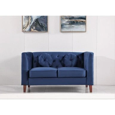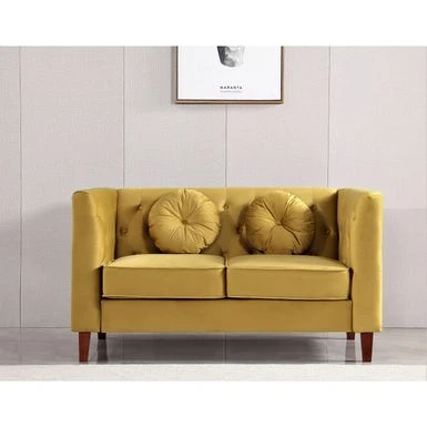 The perfect piece to reflect your regal tastes, this classic chesterfield sofa anchors your seating ensemble in timeless appeal. The perfect piece to reflect your regal tastes, this classic chesterfield sofa anchors your seating ensemble in timeless appeal. Crafted from wood frame, this dapper design strikes an updated, clean-lined silhouette with tight square arms and wood tapered feet. Crushed velvet upholstery brings out this sofa’s glamorous side, while exquisite details including high-density foam fill with spring support, piped seat cushions, matching bolster pillows, and a button-tufted backrest elevate the design.with coordinating throw pillows