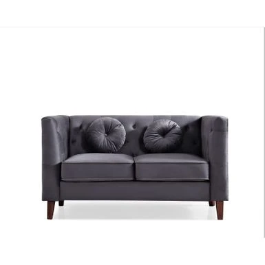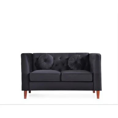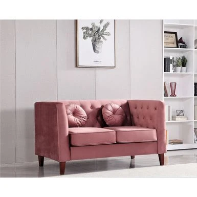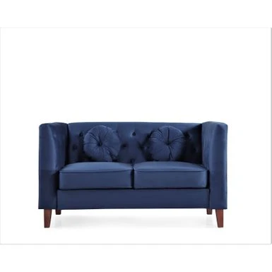The perfect piece to reflect your regal tastes, this classic chesterfield sofa anchors your seating ensemble in timeless appeal. The perfect piece to reflect your regal tastes, this classic chesterfield sofa anchors your seating ensemble in timeless appeal. Crafted from wood frame, this dapper design strikes an updated, clean-lined silhouette with tight square arms and wood tapered feet. Crushed velvet upholstery brings out this sofa’s glamorous side, while exquisite details including high-density foam fill with spring support, piped seat cushions, matching bolster pillows, and a button-tufted backrest elevate the design.with coordinating throw pillows