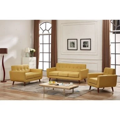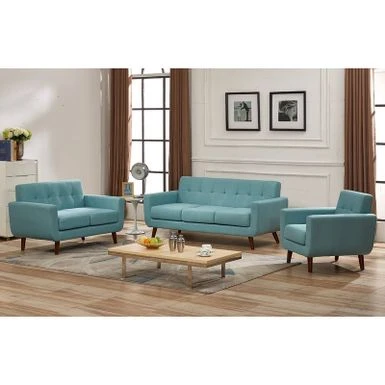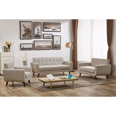 Renew your living room decor with this convenient set of sofa, loveseat, and chair. Renew your living room decor with this convenient set of sofa, loveseat, and chair. Each piece offers high-density foam filling and individually wrapped coils to provide maximum body support and comfort, while the straight arms and back cushions create a modern and neat appearance.FeaturesMade of wood, linen, foam3-piece set includes sofa, loveseat, chairMedium firmnessCarried in Eton blue, Naples yellow, olive green, tan, Payne’s grey, and taupe grey See below for more detailed specificationsSofa: 70 inches long x 29 inches wide x 32.5 inches tall Loveseat: 51 inches long x 29 inches wide x 32.5 inches tall Chair: 31.1 inches long x 29 inches wide x 32.5 inches tall
