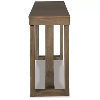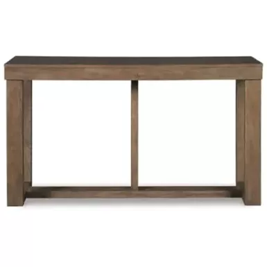 The Cariton sofa table masters the art of simplicity. Bold, blocky profile is enriched with plank-effect styling and a textured grayish brown finish for a look that’s cool and contemporary and a vibe that’s warm and inviting.
