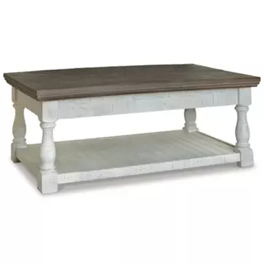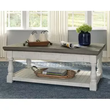 - Two-tone distressed finish (weathered gray and vintage white)