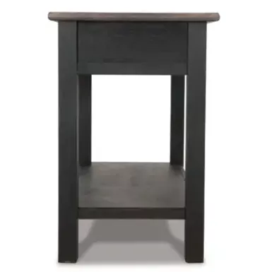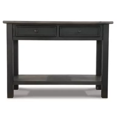 Shabby chic with a hint of down home country. The Tyler Creek sofa table with textured black finish is all the talk of today’s design world. Wood grain shows through the weathered gray-brown top in all of its earthy pleasure. Framed drawers are adorned with lovely traditional hardware. Smooth-gliding drawers make it easy for you to store away your belongings in style.