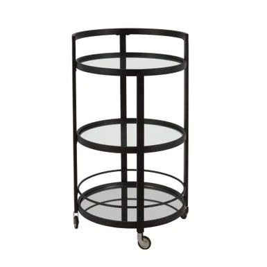 Savor the party with this contemporary bar cart. Railings keep your breakables in place, shelves handle mixers and assorted accouterments. Casters keep you on the move or locked in position. Roll with the flow with this party wagon, or mix things up; re-purpose this as a coffee and kitchen accessory center, grab-and-go walk-by closet, or nightstand!