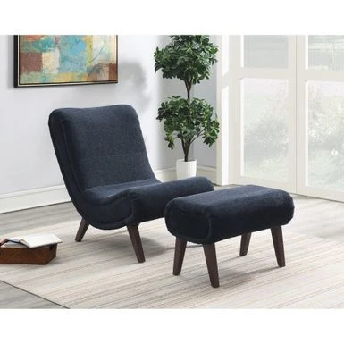 The Hawkins Lounger with Ottoman are styled with lounging in mind. Whether reading a book or catching up on your favorite series, the chair’s plush cushioning, sloped design and subtle curved silhouette paired with a perfect kick-up-your-feet ottoman create a cocoon just for you. Durability and comfort are further enhanced with dense foam seating and sinuous spring support. Simple assembly required.