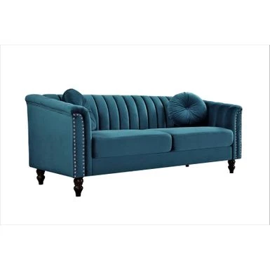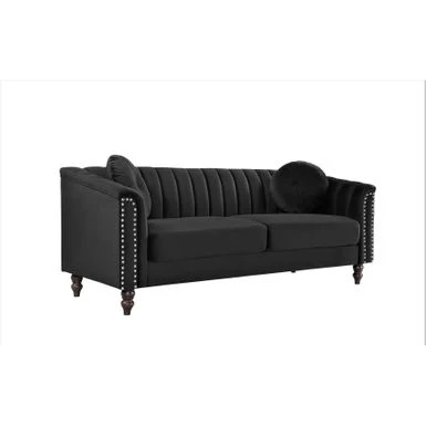 Beautifully styled and consciously crafted using materials. Present your home in modern luxury with a centerpiece sofa that exudes a glamorous vibe at every angle. Beautifully styled and consciously crafted using materials. Present your home in modern luxury with a centerpiece sofa that exudes a glamorous vibe at every angle. This chesterfield-inspired sofa is the ideal addition to any living room with its classic design and traditional elements such as scrolled arms, turned legs, and nailhead accents. Upgraded with a sleek,modern touch of channel tufting, this sofa brings you an undeniably elegant touch to your interior space. Featuring soft velvet upholstery, this sofa stands as a streamlined statement piece that can change the whole flow of your living room. Velvet fabric upholstery imparts timeless style, while high-density foam creates luxuriously comfortable seating. Complete your living room decor with these chic seating options.