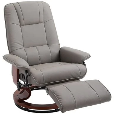 Experience the ultimate relaxation with our HomCom swivel base recliner chair. This traditional style recliner features plush padding, an ergonomic design, and a 360 degree swivel base that allows you to easily recline up to 145 degrees with the extendable footrest. The soft and durable faux leather material is comfortable and easy to maintain. Whether you’re lounging at home or in the office, this recliner is perfect for complete comfort and support.