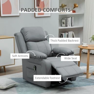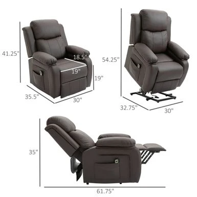 Make your life easier with this power lift recliner from HOMCOM. If you or your loved one are suffering from mobility issues, this power lift chair will be a great help sitting or standing. With a touch of a button, this chair tilts you up or down to help you sit or stand smoothly. Generously padded upholstery with soft PU leather delivers exceptional comfort and relaxation. Let HOMCOM help you enjoy your rest time with this power lift recliner.