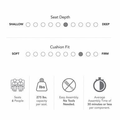 - Couch, Loveseat, and Armchair support up to 825, 550 and 275 pounds respectively