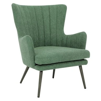 Make a sophisticated, Mid-Century Modern, statement with our Jenson Accent Chair. Elegant vertical channel tufting, contoured high back, open-angled arms and a tall tapered leg design, offer a refined, tailored stance. A perfect pairing for a casual family room vibe yet urban enough for a more industrial loft appeal. Create your own contemporary style with our trending colors in easy care 100% Polyester fabric. Quick and easy delivery, and simple, bolt on leg assembly offers instant gratification.