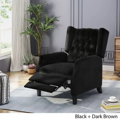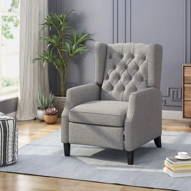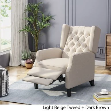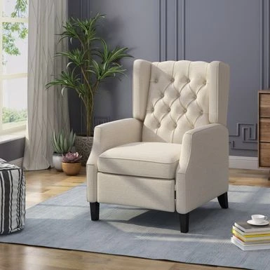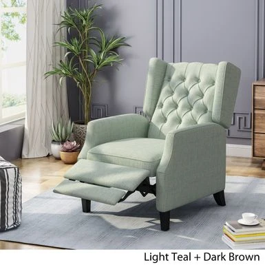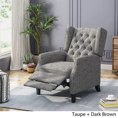 Add bold style to your space with this beautiful Keating recliner from Christopher Knight Home. The recliner features a traditional wingback design, with narrow arms and a compact design that allows it to fit easily into smaller spaces. The durable polyester upholstery is embellished with diamond-stitched button tufting, completing the traditional charm of this eye-catching chair.