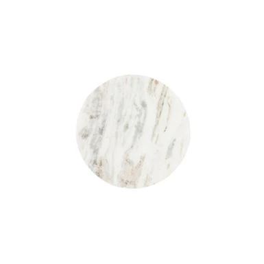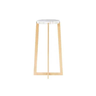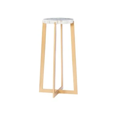 Elegant and refined, this drink table can do more than hold beverages. This chic table looks lovely sitting solo or set alongside a sofa. The open metal base allow surrounding accents to breathe, while the gold finish completes the look. A 13.5 inch round grey marble top provide a perfect stage for drinks, candy dishes, framed photos and beyond. Levelers under the round iron base ensure a stable surface to keep your belongings safe. The compact size allows the table to be effortlessly placed where it’s needed most.